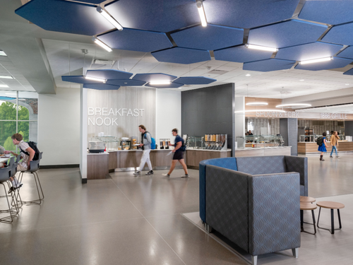 Als diese Universität in Ohio ihren veralteten Speisesaal modernisieren wollte, entschied sie sich für den dekorativen Epoxidboden von Stoncrete EFX, um das Studentenerlebnis zu verbessern.
